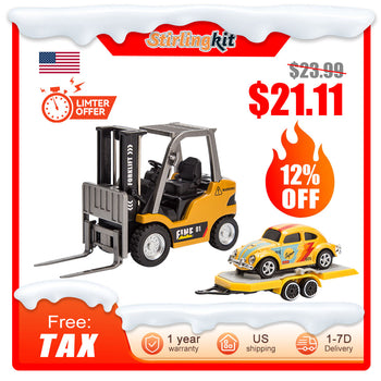 - RC Forklift Remote Control Forklift With Flatbed Trailer Pullback Car 1/64 Scale 2.4G Kids Toy
