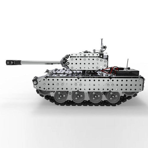 DIY simulation 3D alloy remote control tank model with novel design, lifelike shape and rich texture. The stainless steel metal material is carefully crafted, the surface is finely polished, the assembly feels comfortable and smooth, all parts are seamlessly spliced, and the workmanship is more exquisite.